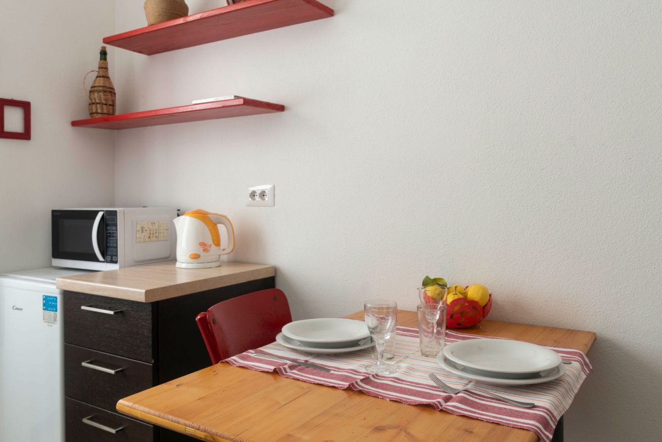 L'alloggio è composto da camera da letto, cucina e bagno e si trova al primo piano di un'abitazione composta da 3 appartamenti (2 al primo piano e 1 al secondo), con entrata principale e scala in comune. Entrambi gli appartamenti del primo piano vengono affittati e sono uno di fronte all'altro. Per questioni di spazio, non è possibile parcheggiare nel vicolo in cui si trova l'appartamento. Ci sono ampie possibilità di parcheggio a circa tre minuti a piedi dall'alloggio.