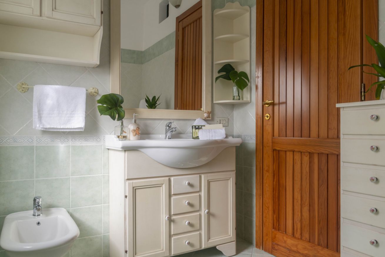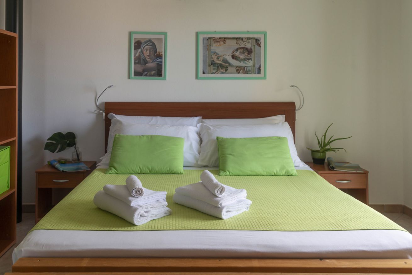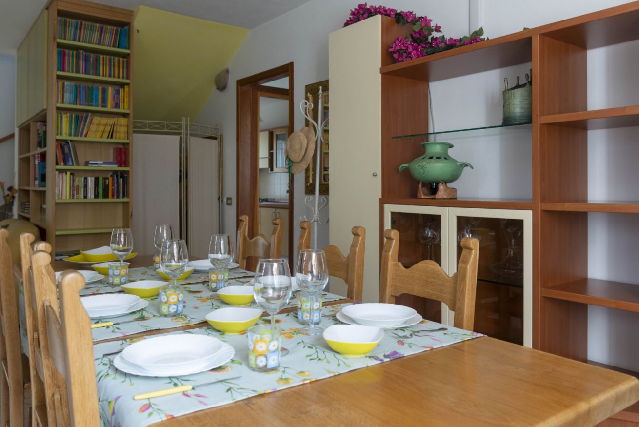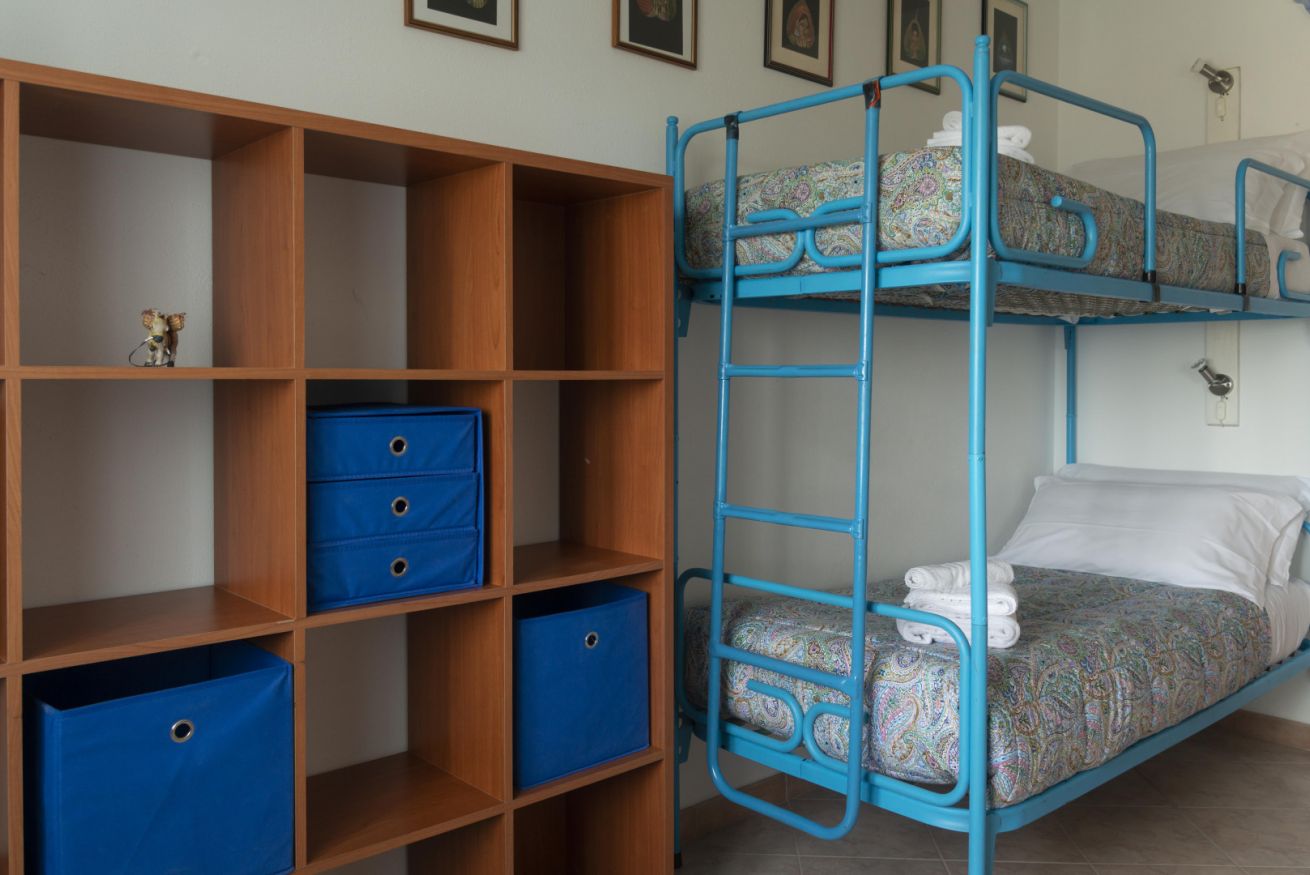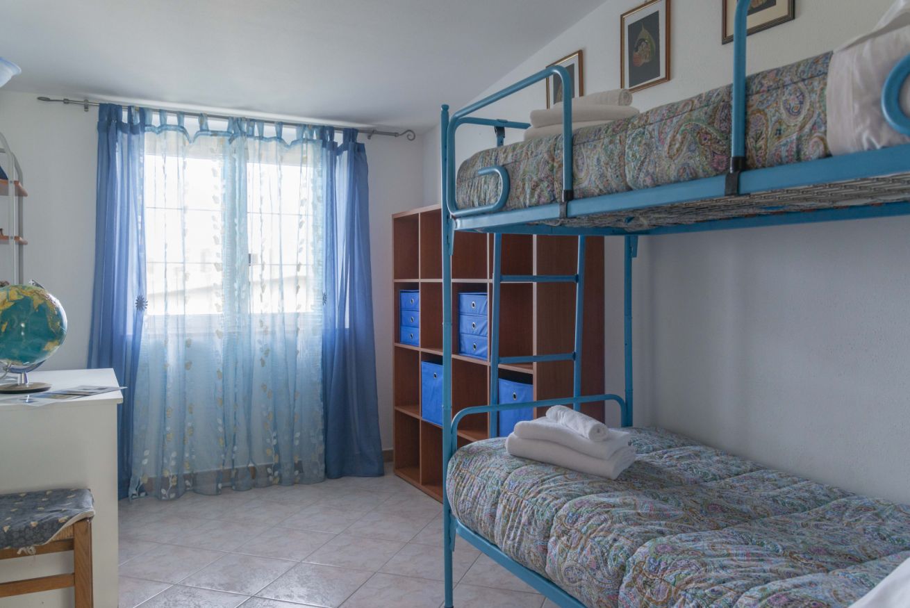 Quadrilocale al primo piano, balcone vista mare, confortevole e luminoso, pochi minuti a piedi dalla spiaggia. La cucina è completa di accessori, piatti, stoviglie ed elettrodomestici: bollitore, frigorifero, lavastoviglie, microonde e forno. La zona notte è composta da 3 camere da letto con 2 letti matrimoniali e 1 letto a castello.