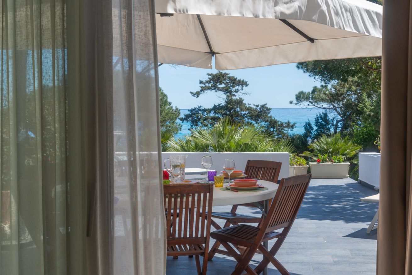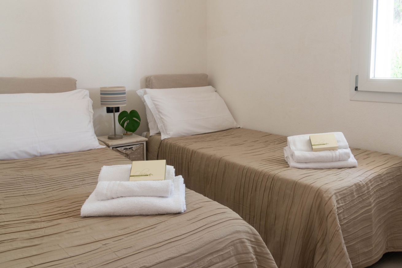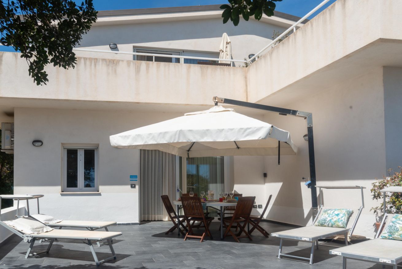 Appartamento indipendente al piano terra di una villa bi-famigliare sulla bellissima spiaggia di Cala Liberotto. Si compone di 3 stanze da letto, 2 bagni, soggiorno con cucina e ampia terrazza fronte mare. In comune con l'appartamento al piano inferiore: il giardino da cui accedere alla spiaggia, l'area parcheggi intera alla proprietà, le docce esterne.