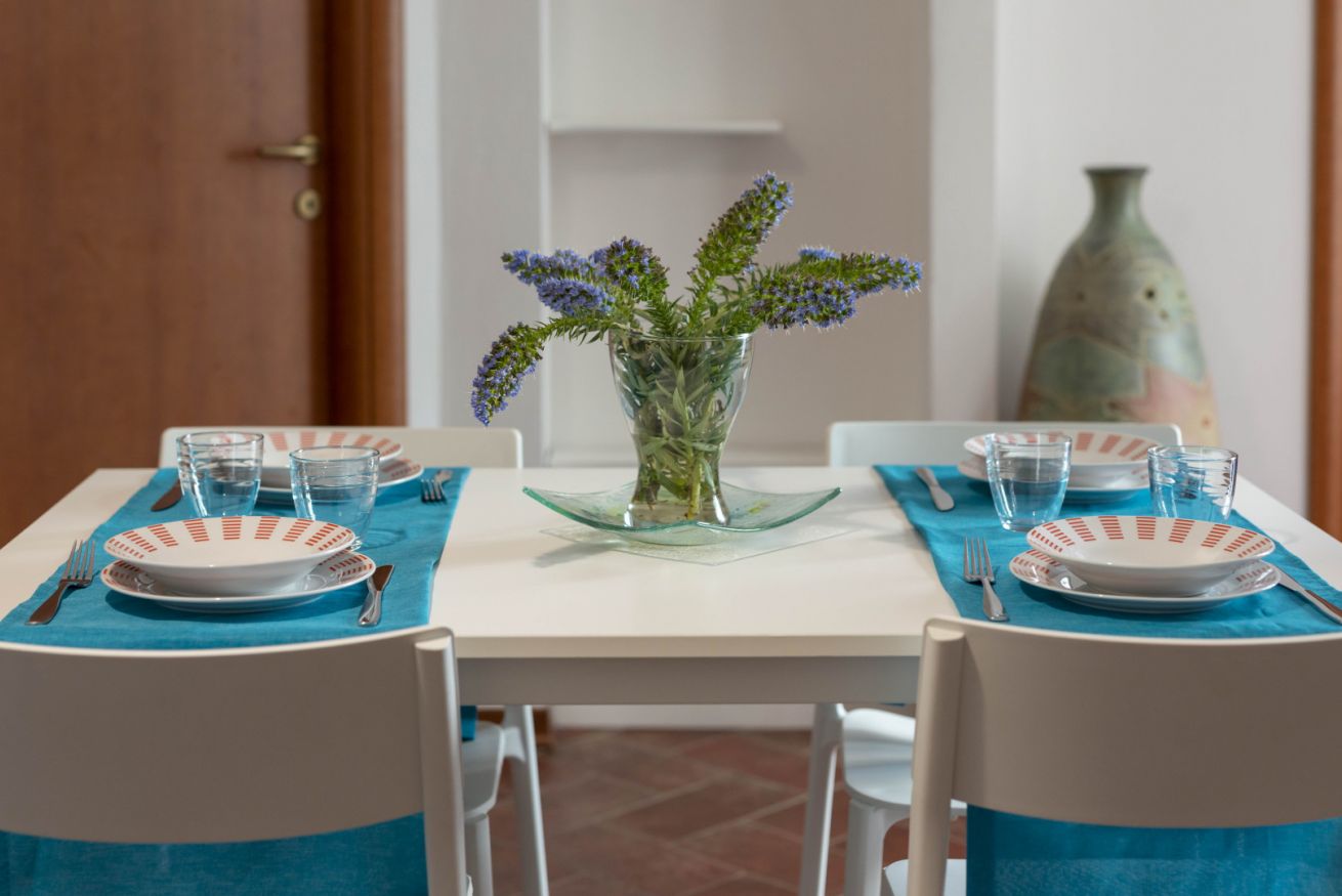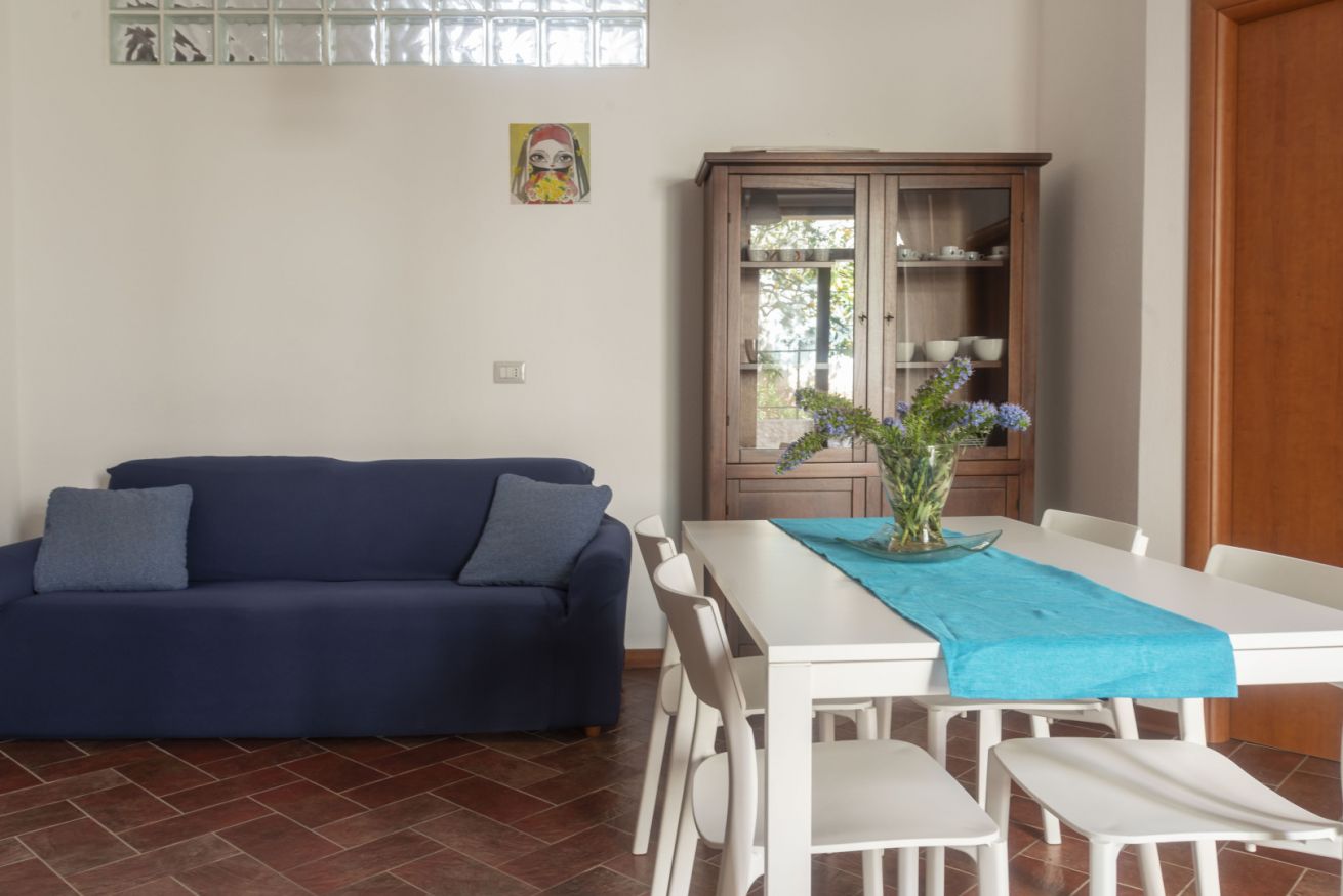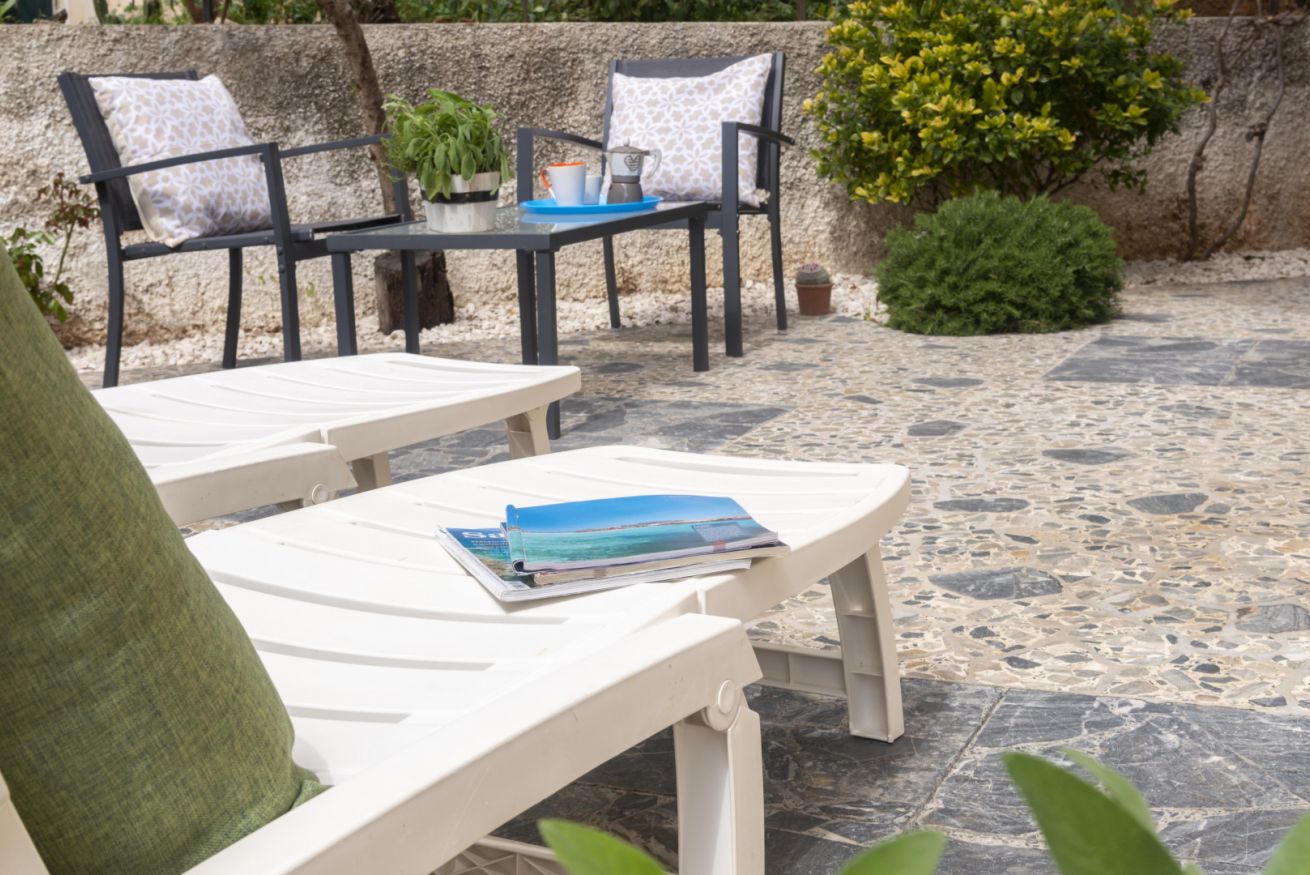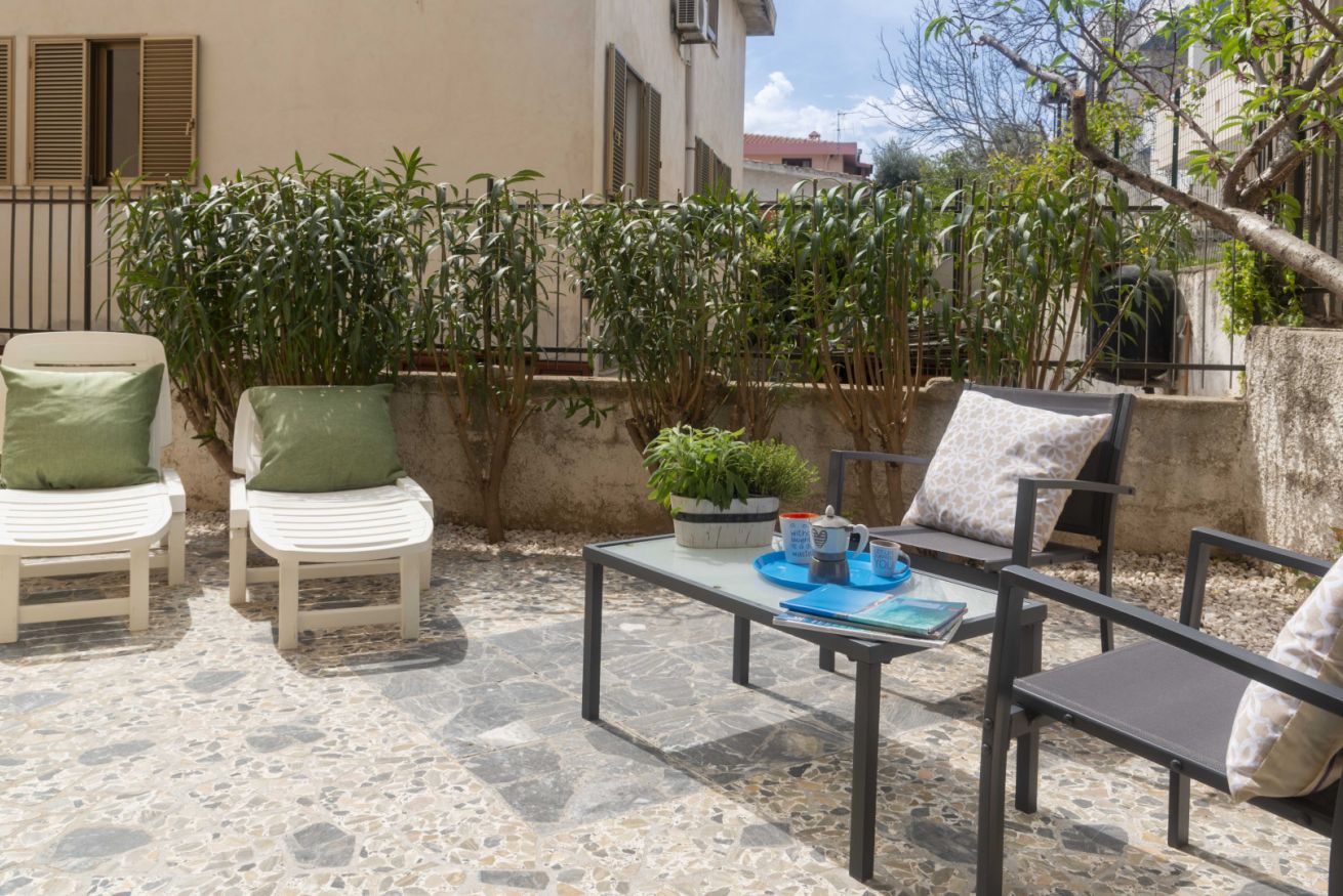 Appartamento al piano terra (sollevato di pochi gradini), curato e accessoriato di tutto ciò di cui c'è bisogno per godere di una vacanza in serenità. Grazie alla posizione centrale di questo alloggio, potrai accedere facilmente a tutte le attrazioni locali e goderti il mare. Air-condition, posti auto liberi in strada davanti alla casa, wifi, terrazza con giardino, 2 camere da letto e 1 bagno.